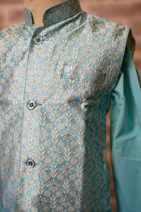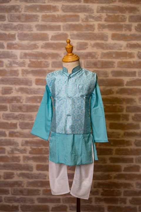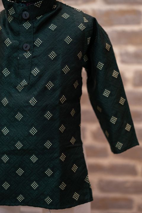 Premium dark teal base with bold red, yellow, and cream floral design kurta