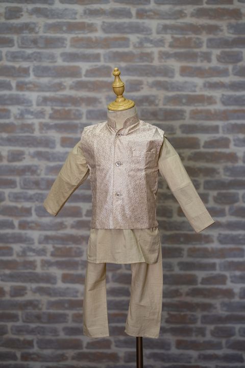 Premium kurta featuring elephants, lions, and rainbows on a cream base kurta