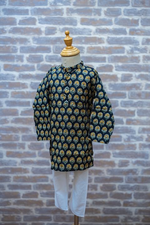 Premium cotton fits the hand-drawn, sketch-style print kurta